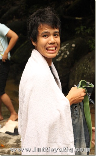 Gambar kat atas ni member aku nama Taqi. Ni time baru sampai Sedim. Muka masih gembira sebab excited nak mandi sungai. Kami sampai tu pun dah dekat-dekat senja dah. Time tu jugak baru lepas hujan dan air sungai Sedim memang sangat deras! Scary kot. Aku memang tak nak mandi sebab aku tak bawak pakaian lebih. So, aku just jadi photographer ja lah.